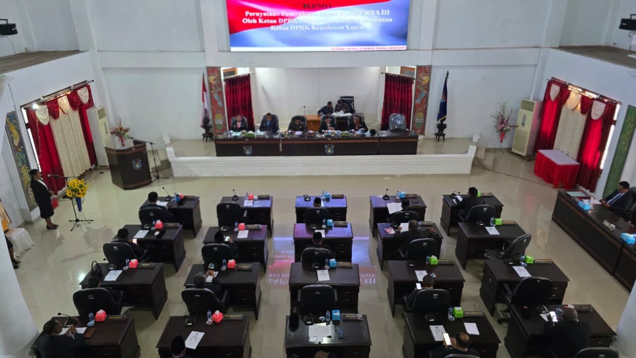 (pelitaekspres.com) –SERUI – Dewan Perwakilan Rakyat Kabupaten (DPRK) Kepulauan Yapen resmi membuka Rapat Paripurna dengan agenda utama pembahasan dan penetapan Rancangan Peraturan Daerah (Raperda) tentang Laporan Keuangan Pemerintah Daerah Tahun Anggaran 2024 serta Rencana Pembangunan Jangka Menengah Daerah (RPJMD) Tahun 2025–2029. Rapat berlangsung pada Selasa dan Rabu, 19–20 Agustus 2025, di ruang sidang utama DPRK Kepulauan Yapen.