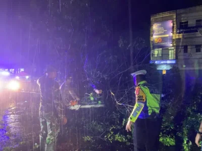 (pelitaekspres.com) -TUBA- Polres Tulang Bawang, Polda Lampung, melakukan quick respons (respon cepat) atas peristiwa pohon besar tumbang yang menutupi jalan yang diakibatkan oleh hujan deras.