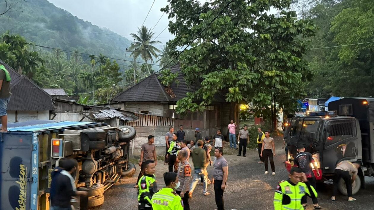Kecelakaan melibatkan kendaraan bernomor polisi BE 9729 ABU yang mengangkut berbagai barang bantuan, termasuk ball pakaian. Berdasarkan keterangan pengemudi, Dede, kecelakaan terjadi akibat kondisi jalan licin dan tikungan tajam saat hujan. Kendaraan kemudian hilang kendali hingga terguling, dan berhenti dengan posisi roda kanan berada di atas.