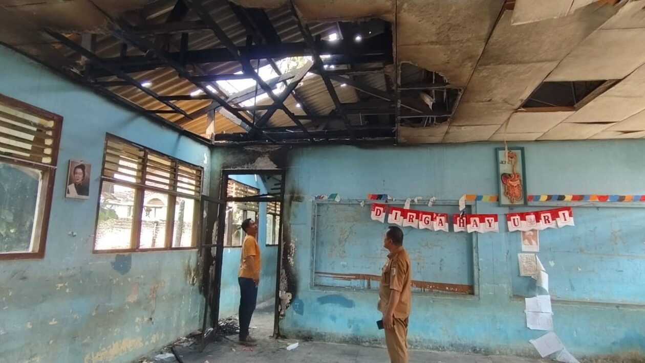 “Akibat dari kejadian kebakaran itu, dua ruang kelas mengalami kerusakan jendela, pintu dan plafon serta atapnya, ” Tambahnya.