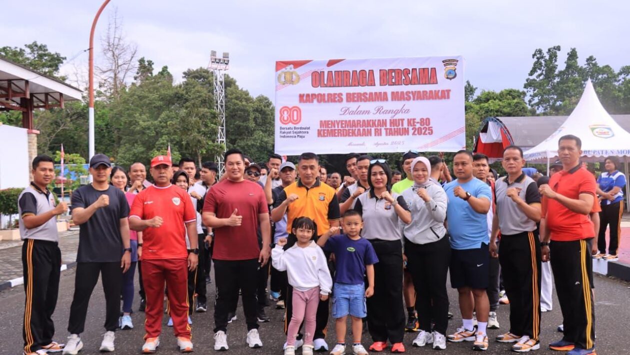 (pelitaekspres.com) –MOROWALI- Dalam rangka menyambut Hari Ulang Tahun ke-80 Kemerdekaan Republik Indonesia, Polres Morowali menggelar olahraga bersama yang diikuti Polres dan jajaran, Bhayangkari, serta masyarakat, bertempat di Alun alun rumah jabatan Bupati Morowali pada Jumat (15/8/2025).
