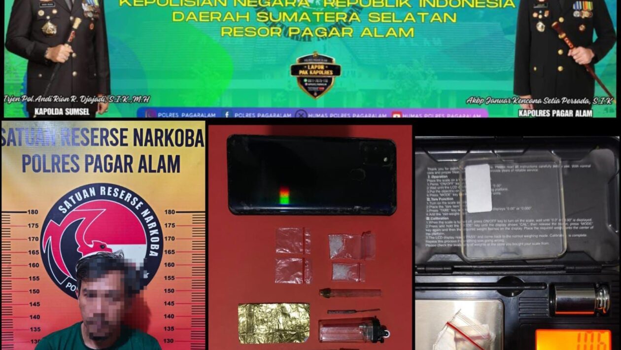(pelitaekspres.com) -PAGARALAM–Polres Pagar Alam melalui Satuan Reserse Narkoba Polres Pagaralam berhasil mengungkap kasus penyalahgunaan narkotika jenis shabu di wilayah hukum Polres Pagaralam. Seorang pria berinisial M. Yusuf (40), warga Griya Bangun Sejahtera, Kelurahan Bangunrejo, Kecamatan Pagaralam Utara, ditangkap pada Senin (8/9/2025) sekitar pukul 13.30 WIB.