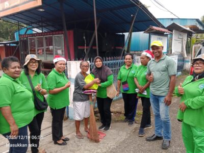 (pelitaekspres.com) -SERUI — Dalam semangat kasih dan kebersamaan menyambut Hari Raya Natal, Pengurus Tim Penggerak PKK Kabupaten Kepulauan Yapen menunjukkan kepedulian nyata kepada para ibu pekerja kebersihan Kota Serui. Pada Jumat, 19 Desember 2025, TP PKK Kabupaten Kepulauan Yapen menyerahkan paket bingkisan Natal kepada para ibu yang setiap hari setia menyapu dan membersihkan jalan-jalan di Kota Serui.