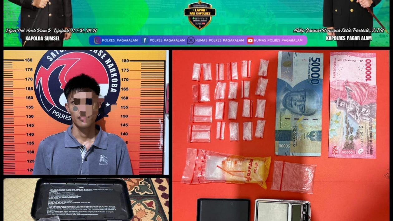 (pelitaekspres.com) – PAGARALAM– Upaya kepolisian dalam memberantas peredaran narkoba di Kota Pagar Alam kembali membuahkan hasil. Satuan Reserse Narkoba (Satresnarkoba) Polres Pagar Alam berhasil mengungkap kasus penyalahgunaan narkotika dengan menangkap seorang pemuda berinisial M Moris bin Rolesmon (23) di kontrakannya di Jalan Taman Siswa, Kelurahan Sukorejo, Kecamatan Pagar Alam Utara, pada Rabu malam (22/10/2025).