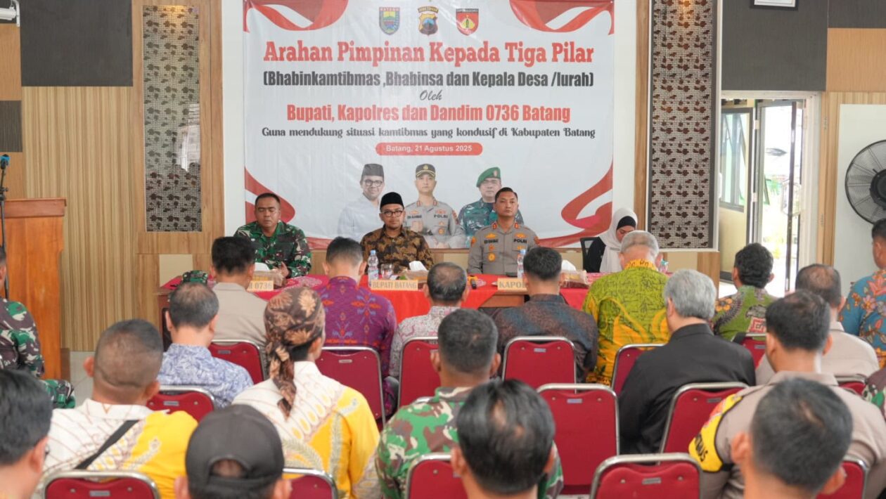 Bupati Batang Faiz Kurniawan menekankan bahwa kondusivitas keamanan adalah fondasi utama pembangunan. Ia menyebut tiga pilar keamanan (Kepolisian dan TNI) dan pilar pemerintahan (eksekutif dan legislatif) harus bersinergi.