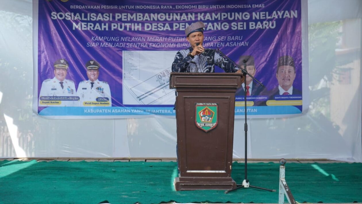 (pelitaekspres.com) – ASAHAN – Desa Pematang Sei Baru, Kecamatan Tanjung Balai, menjadi pusat perhatian dalam kegiatan Sosialisasi Program Kampung Nelayan Merah Putih yang dihadiri Staf Khusus Menteri Kelautan dan Perikanan RI Dedi Irwan, S.P., M.Si. Kegiatan bertema “Berdayakan Pesisir untuk Indonesia Raya, Ekonomi Biru untuk Indonesia Emas” ini diikuti Plt Asisten Perekonomian dan Pembangunan Setdakab Asahan, Kepala Dinas Perikanan Kabupaten Asahan, Camat Tanjung Balai, Anggota DPRD Asahan Fraksi PAN, Ketua dan Pengurus HNSI Asahan, pengurus TP PKK kecamatan dan desa, Kepala Desa Pematang Sei Baru, Babinsa, tokoh masyarakat, kelompok nelayan, serta tamu undangan lainnya, sebagai bentuk dukungan bersama terhadap pembangunan kawasan pesisir Kamis 11 Desember 2025.