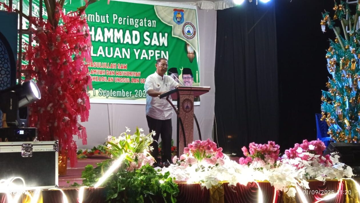 (pelitaekspres.com) –SERUI– Panitia Hari Besar Islam (PHBI) Kabupaten Kepulauan Yapen sukses menggelar Tabligh Akbar dalam rangka memperingati Maulid Nabi Muhammad SAW di Alun-Alun Trikora, Serui. Ribuan jamaah memadati lokasi acara yang mengusung tema “Meneladani Akhlak Rasulullah SAW untuk Meneguhkan Ukhuwah Islamiyah Wathoniyah Demi Mendukung Yapen Rumah Kita yang Berkeadilan, Unggul, dan Sejahtera (1/9/2025).
