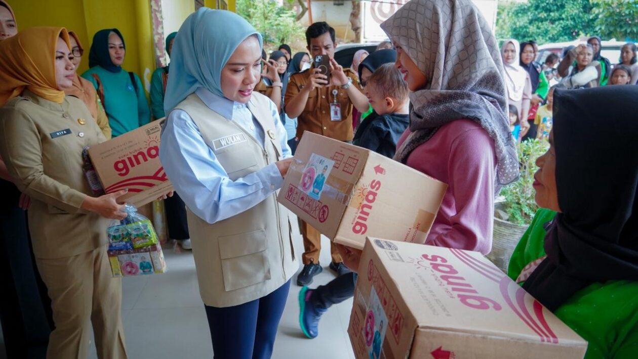(pelitaeskpres.com) –BANDAR LAMPUNG- Ketua Tim Pembina Posyandu Provinsi Lampung, Purnama Wulan Sari Mirza, menyerahkan bantuan susu kepada masyarakat sekitar Kantor Gubernur Provinsi Lampung. Kegiatan ini dilaksanakan oleh Tim Pembina Posyandu di Dinas Pemberdayaan Masyarakat dan Desa (PMD) Provinsi Lampung, Senin (13/10/2025).