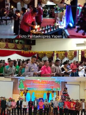 (pelitaekspres.com) –SERUI- Wakil Bupati Kepulauan Yapen Roi Palunga dan Ketua Dewan Perwakilan Rakyat Kabupaten (DPRK) Kepulauan Yapen Ebzon Sembai S.Pi, didampingi istri Nyonya Adolina Elisabet Maniani, menghadiri Perayaan Natal Ikatan Keluarga Maluku (Ikemal) Cabang Kabupaten Kepulauan Yapen di Gedung Silas Papare, Serui, Selasa (30/12/2025).