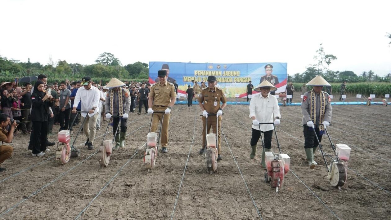 Penanaman dilakukan secara simbolis sebagai tanda dimulainya rangkaian tanam jagung skala luas di wilayah tersebut.